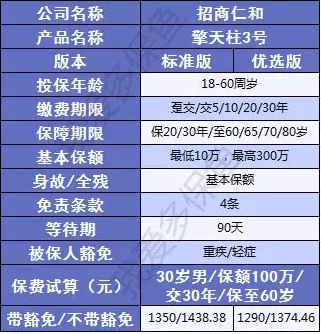 擎天柱3號(hào)分兩個(gè)版本,標(biāo)準(zhǔn)版和優(yōu)選版,差別主要體現(xiàn)在健康告知上。