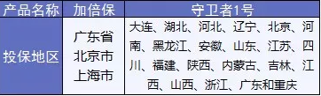 加倍保和多數(shù)重疾險(xiǎn)一樣,只限定在北上廣地區(qū),但是守衛(wèi)者1號(hào)的投保地區(qū)覆蓋全國(guó)約73%的省市,更有優(yōu)勢(shì)。