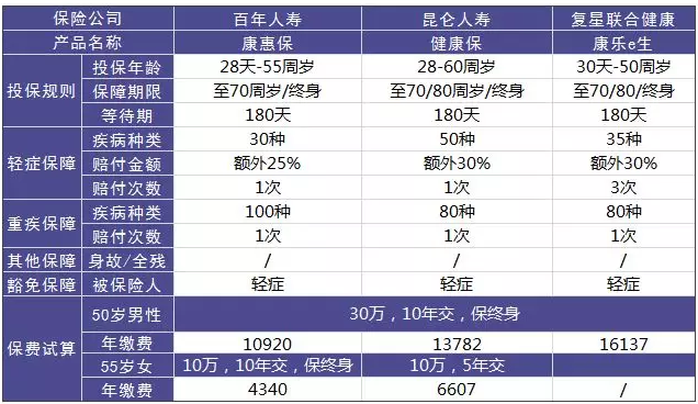 50-55周歲:康惠保和健康保都能買,如果只買10萬(wàn)保額,那么無(wú)疑康惠保是最好的選擇;如果想要買高一點(diǎn)的保額,比如30萬(wàn)的話,就只能選擇健康保了。