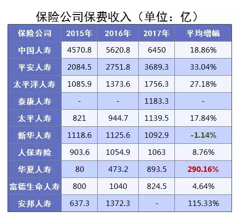 這兩家保險公司的年保費收入迅速增長,在2017年的時候,更是成倍增長。