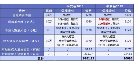 好在,它的保費(fèi)也沒(méi)有增加太多,所以如果是喜歡平安福的朋友,確實(shí)2019要比2018好一些。