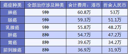 香港一個(gè)專(zhuān)業(yè)醫(yī)療團(tuán)隊(duì),給出了部分高發(fā)癌癥全套治療費(fèi)用測(cè)算報(bào)告: