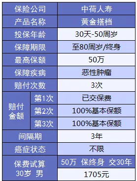 今天,中荷人壽也出了一款多次賠付的防癌險(xiǎn),號(hào)稱(chēng)重疾險(xiǎn)的黃金搭檔,所以它的名字也叫作“黃金搭檔”。