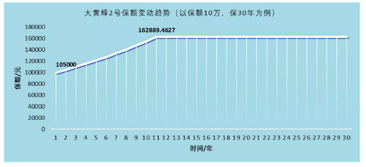 保額上看,大黃蜂、慧馨安、童樂保三個產(chǎn)品的保額為100,000-800,000,隨e保少兒版保額為5-40,000。這里要注意的重點是大黃蜂2號,其保額正在增長。隨著時間的推移,大黃蜂2號的保額可以達到基本保額的1.6倍。