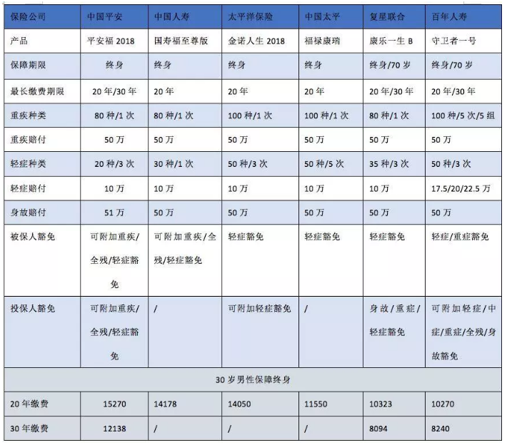 讓我們來比較市場上最熱門的重疾單次賠付的產品: