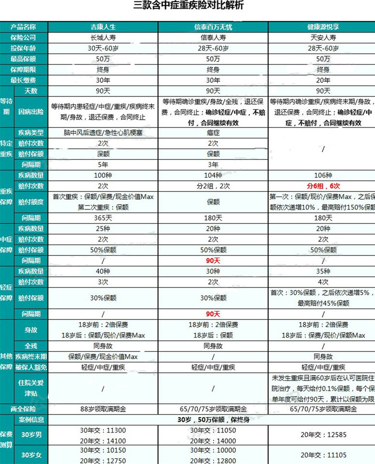 最近有很多人問(wèn)多保魚(yú)長(zhǎng)城吉康人生、 信泰百萬(wàn)無(wú)憂(yōu)、天安健康源悅享這三款重疾險(xiǎn)哪款比較好,不知道如何購(gòu)買(mǎi),今天多保魚(yú)就給大家分析分析。