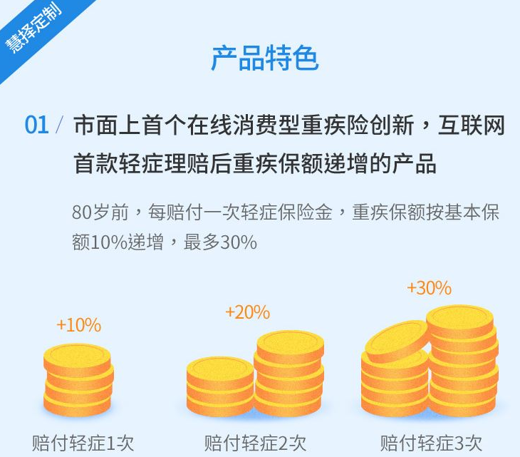 1.重大疾病保險(xiǎn)保額將增長(zhǎng)到輕癥賠付后,重大疾病保險(xiǎn)金額可以增加到130%(每次增加10%,最多上浮3次)