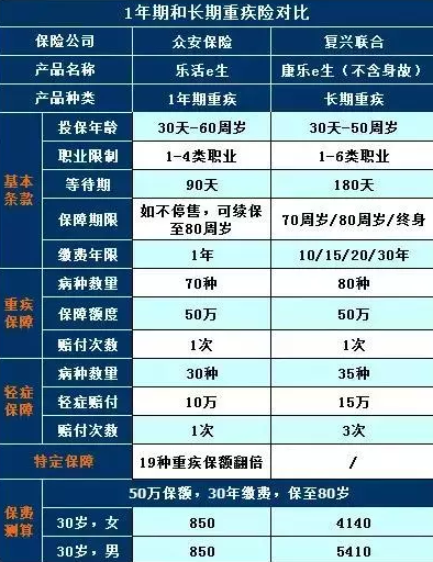 為了讓每個(gè)人都能更容易地做出決定,我們選擇了兩個(gè)典型的產(chǎn)品比較來(lái)說(shuō)明一年期和長(zhǎng)期重大疾病保險(xiǎn)的優(yōu)缺點(diǎn)。