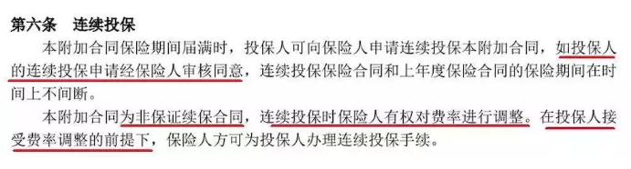 換句話說(shuō),這個(gè)產(chǎn)品不保證續(xù)保,費(fèi)率也可以調(diào)整。