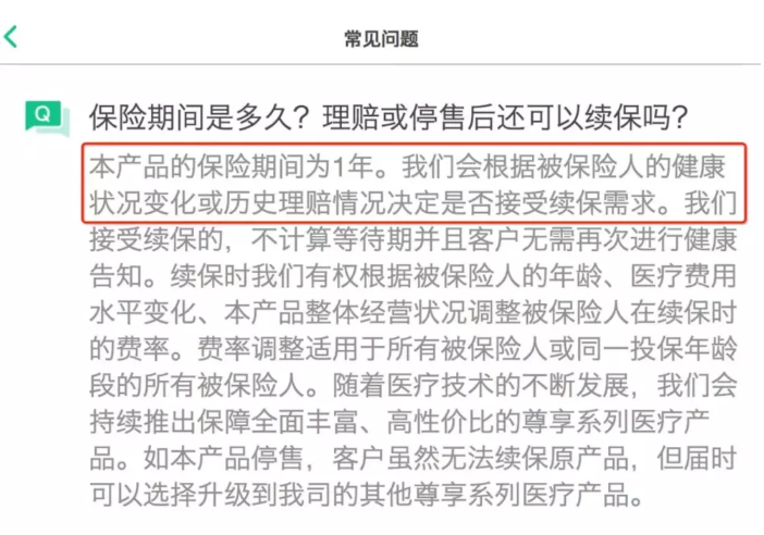也就是說,隨著父母年齡的增長,身體出現(xiàn)了一個小問題。當(dāng)最需要保險時,尊享e生爸媽版可能不續(xù)保。簡而言之,醫(yī)療費用的報銷可能只持續(xù)一年。僅此一點,我不建議使用此尊享e生爸媽版。