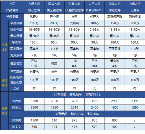 這是多保魚選的幾個(gè)比較有代表性的定期壽險(xiǎn)