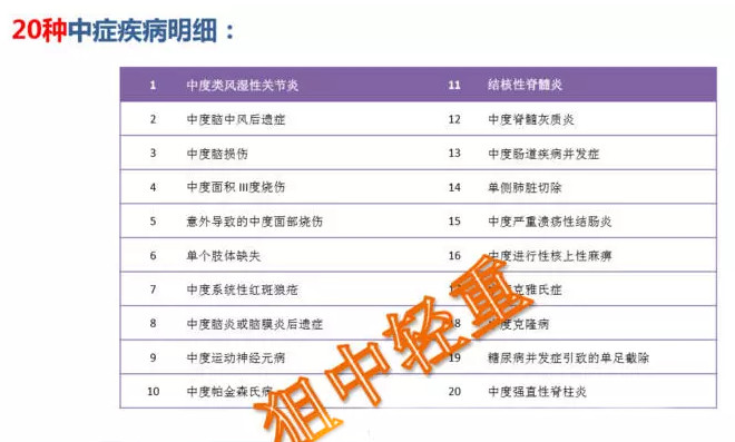 疾病類型:20種,無(wú)分組,每個(gè)賠付保額的60%,最多賠2次;