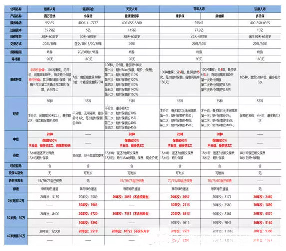 從表中可以看出,以0歲男孩每年支付30萬(wàn)保額為例,百年康多保 20年付款比天安的健康源悅享便宜7%,超過(guò)弘康的多倍保約7%,天安健康源享有60歲以后住院護(hù)理津貼的優(yōu)勢(shì),但保障限制是在被保險(xiǎn)人60之前沒(méi)有申請(qǐng)重疾理賠,如果60歲如果你已申請(qǐng)住院護(hù)理津貼,您將從、疾病理賠結(jié)束時(shí)支付的住院護(hù)理基金中扣除。該產(chǎn)品的具體責(zé)任如下:天安健康源(悅享)首創(chuàng)重疾+住院關(guān)愛(ài)津貼,再次引領(lǐng)市場(chǎng)趨勢(shì);多年來(lái)市場(chǎng)上的成本效益市場(chǎng)弘康多重保險(xiǎn)比保費(fèi)高出約7%,而且優(yōu)勢(shì)也很明顯,額外的疾病是賠付2次,輕癥沒(méi)有分組沒(méi)有間隔,你最多可以賠3次,每次保額也多次高于弘康多倍保,所以額外的保費(fèi)仍然更有價(jià)值;