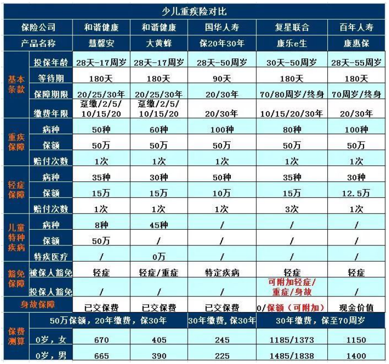 二、市場熱銷的兒童的重大疾病保險(xiǎn)比較評(píng)估