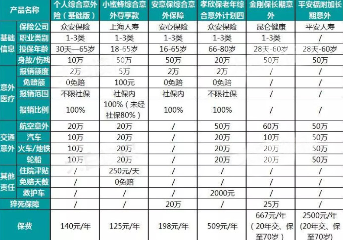 從上表可以看出,普通1年的意外險非常便宜,比如蜜蜂,50萬保額,只要125元/年,連老人如孝欣保,只需509元/年。